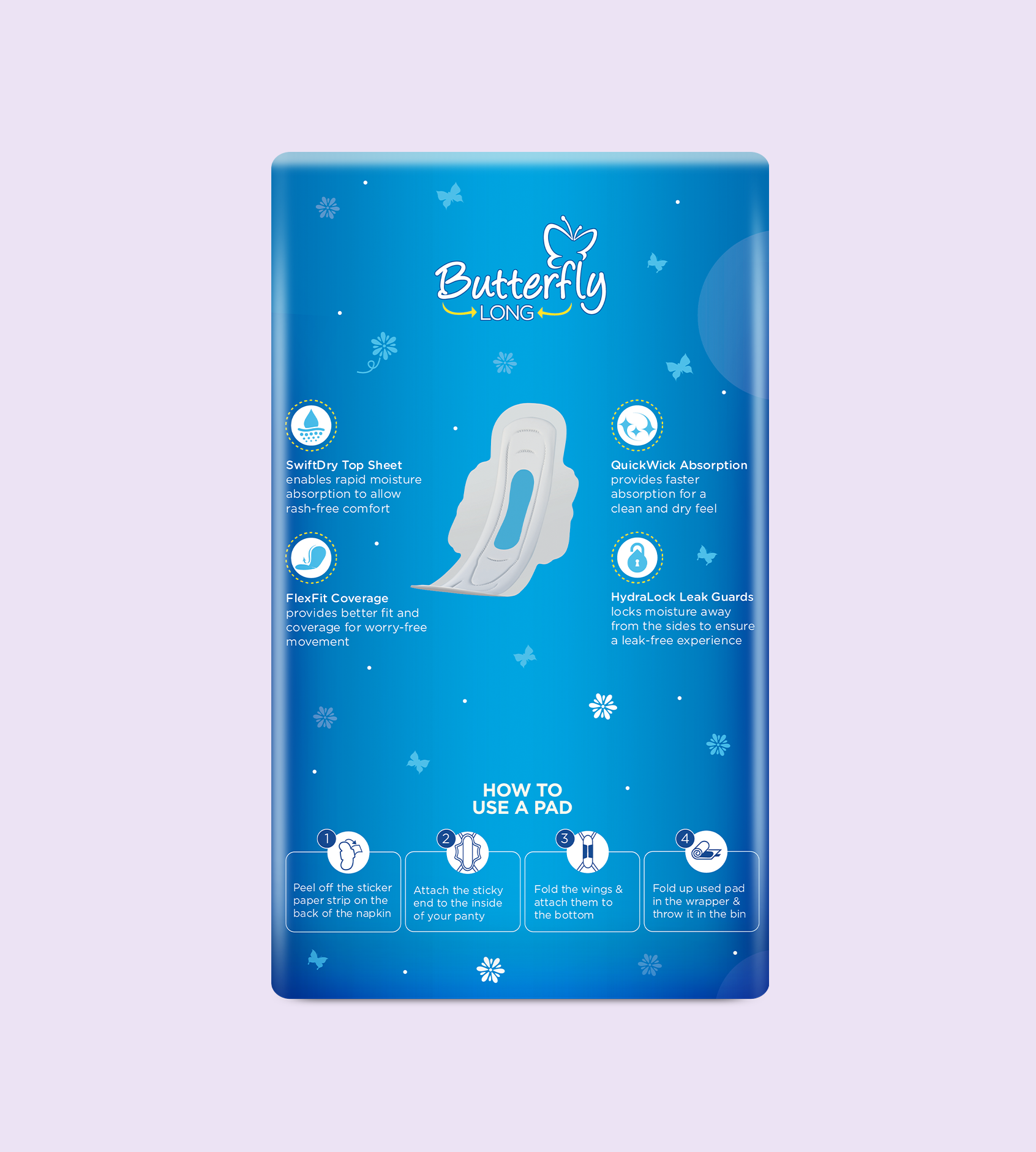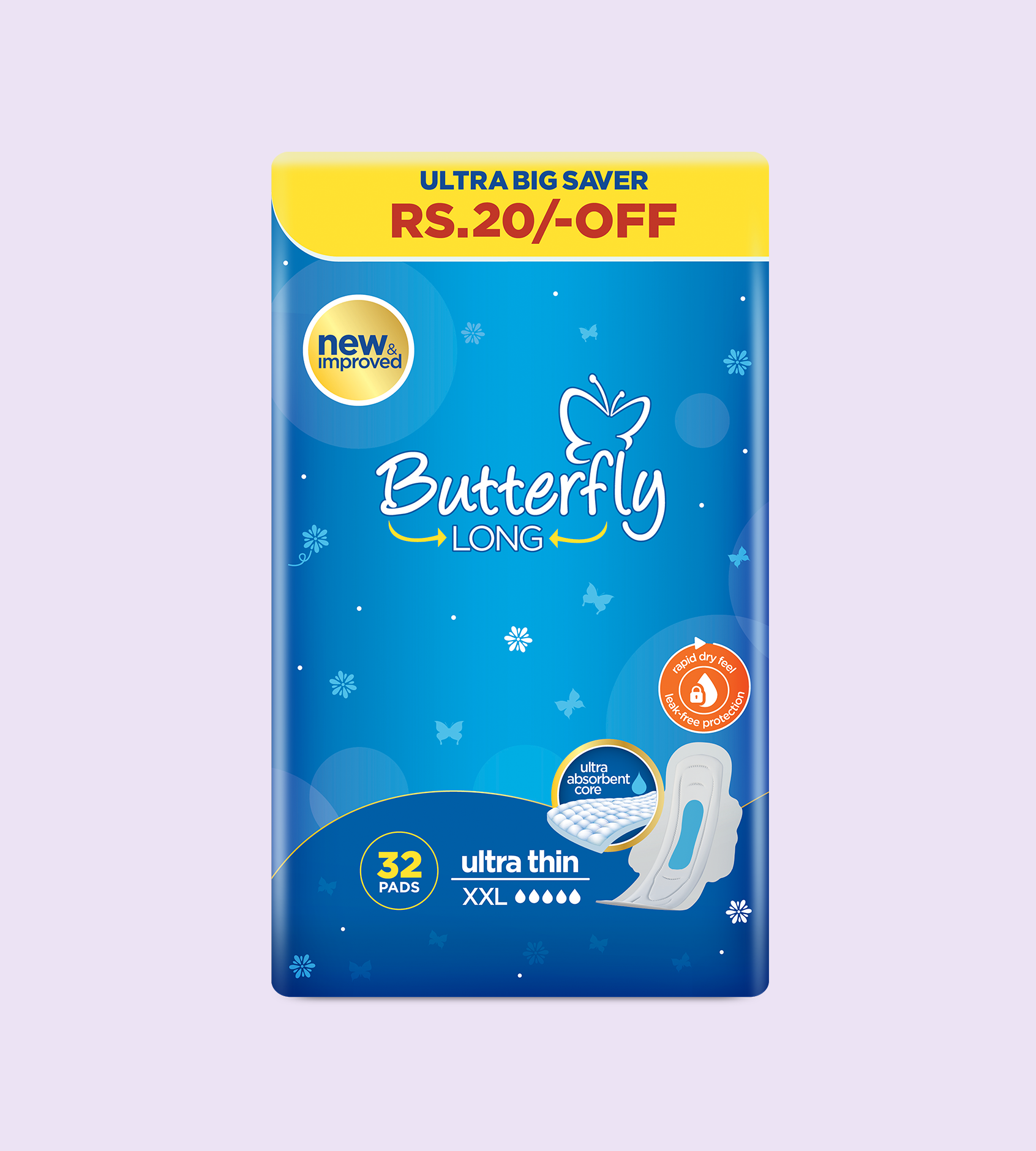 Get ultimate absorption & leak-free protection with the long – extra wide Butterfly Ultra Big Saver.