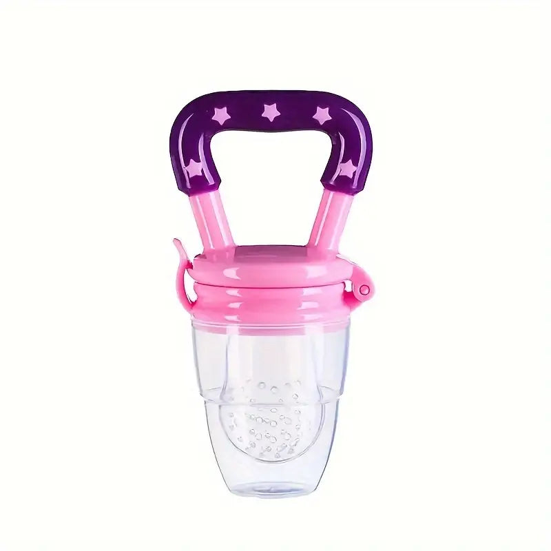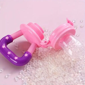- Feeding Pacifier Baby Food Fruit Feeder Soother Weaning Silicone Nipple Baby Soother. Easy to clean – Clean-up is very easy unlike other products that are constructed with a mesh material which is hard to clean, all you do is wash in warm soapy water or boil the feeder nipple for sterilization. The food grade silicone is stain resistant and won’t spot or stain like similar products that use mesh bags. Moms can relax knowing that their little one can be introduced to solid foods through our food feeder starting at a very young age. The tempered texture nipple holes DO NOT allow chunks of food through which could induce choking. The feeder also allows moms to twist the handle pushing the food further into the nipple so the baby can get all the food.